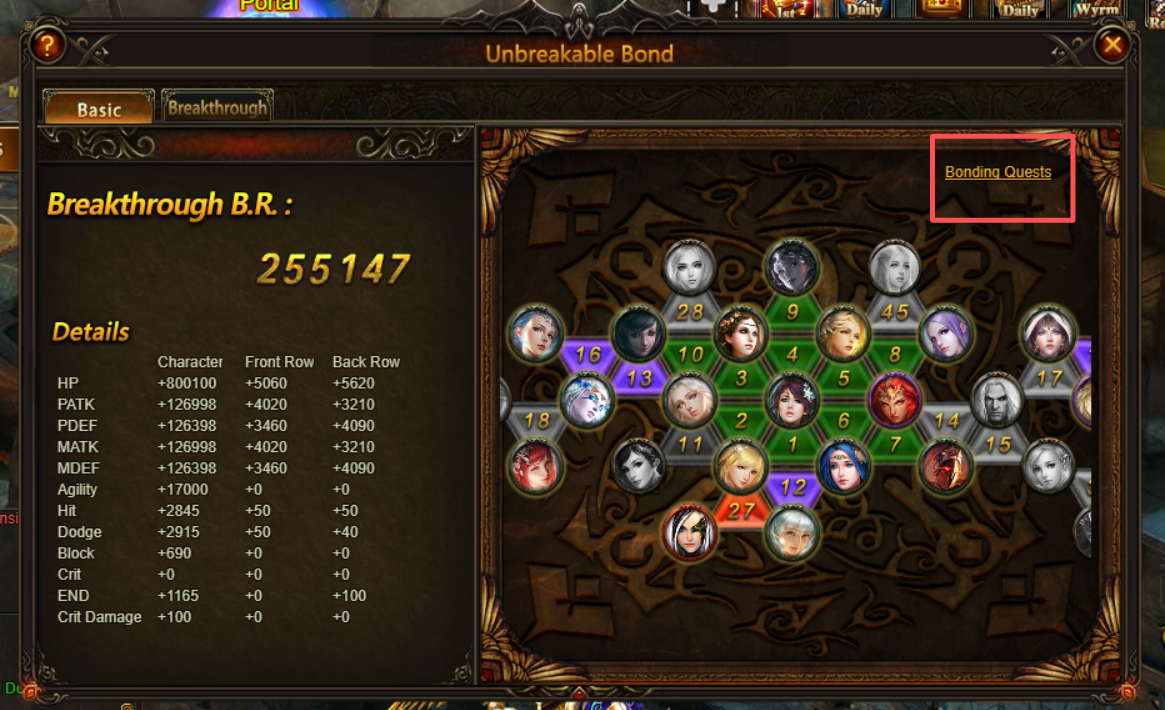 and I'm not sure whether there is something or not on unbreakable bond-bonding quest,but it is empty