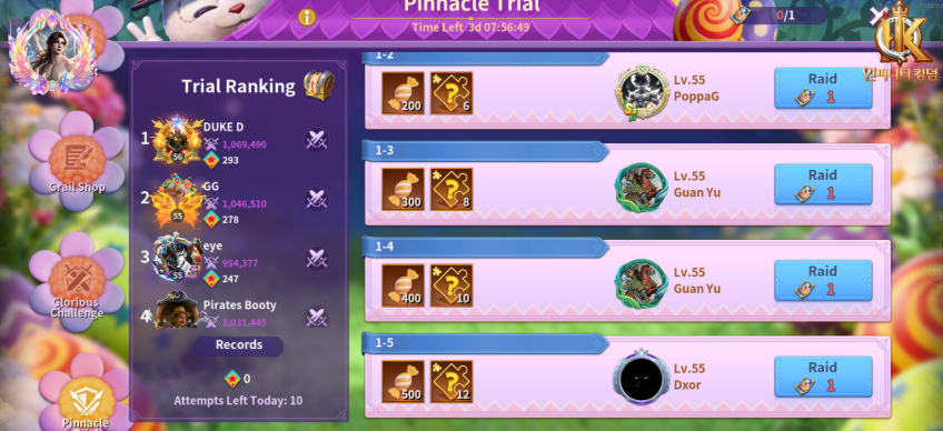 Pinnacle Trial becomes more important than usual, not just for its rewards but for how much candy it provides from day three onward.