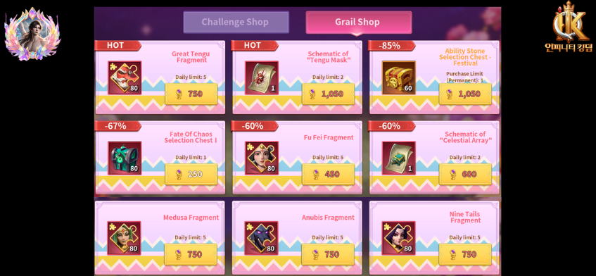 - Grail shop and immortal choices