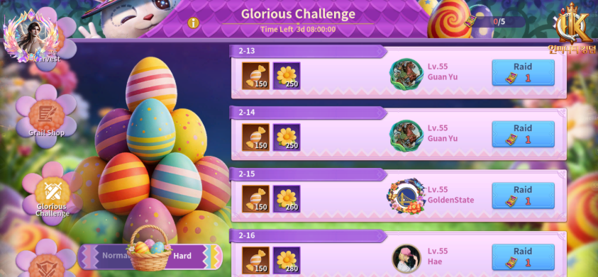 Glorious Challenge contributes steadily, especially once hard mode opens.