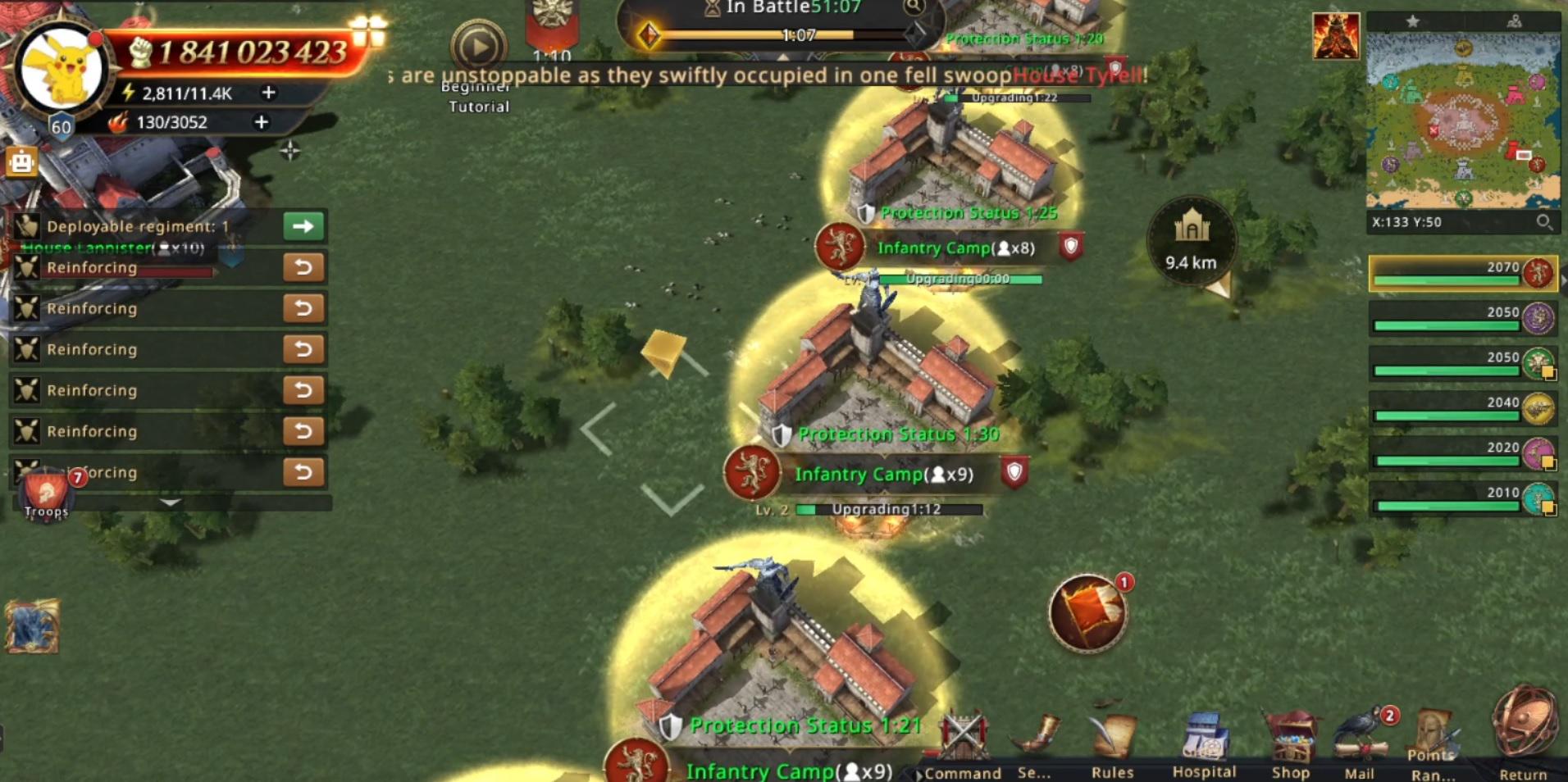 After they've been fully occupied, it was time for the team to start constructing them, and they decided to go with a military approach and try to occupy at least one more clan castle and why not maybe even the City of Glory. At least for now their plan worked as on the first NPC attack after the military camps got constructed the NPCs managed to occupy the House Tyrell's Clan Castle.