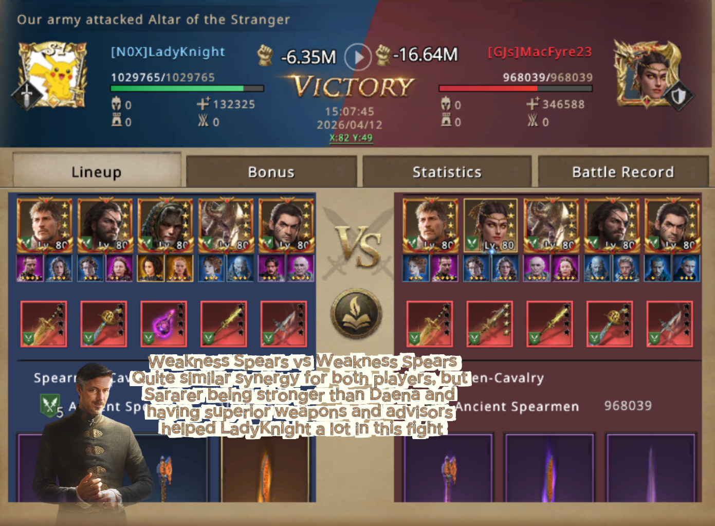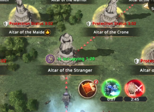 As expected, the Starks team was all over the altars, expecting to face no opposition and be able to fully control the whole map, but the Targaryen's decided to give them a run for their money and try to occupy at least the altars from their side of the battlefield and from the side of their newly conquered clan castle. On such a stacked battlefield, there wasn't much that LadyKnight could do with solo attacks, so she decided to focus on reinforcing the stronger warriors in her team but still scout every altar for targets of opportunity.