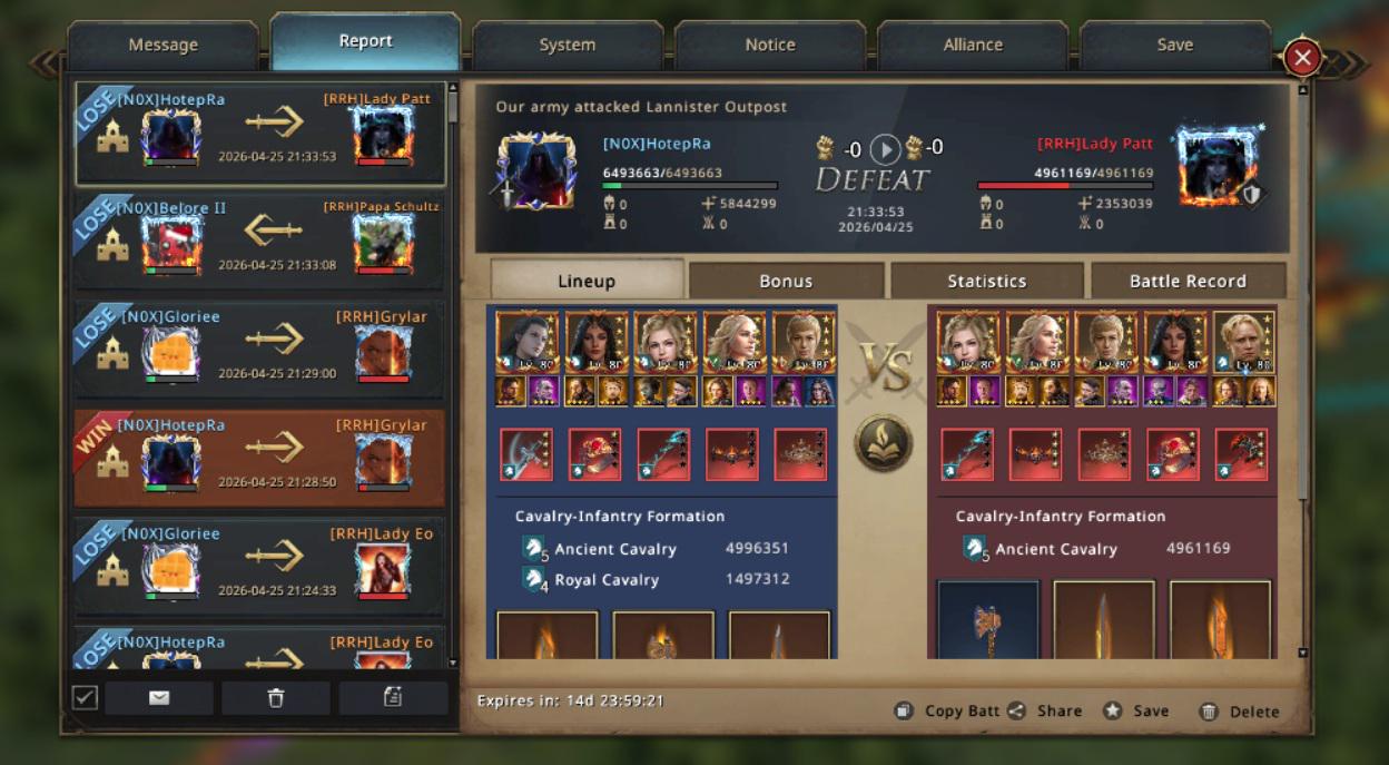 Panic hits! I race through the UI and can’t find the right icon to click. By the time I react, the slow march bounces. I do manage to fix it, open the right troop types, disband, and we get a strong account inside, but completely uncoordinated and RRH intercepts our failed swap without breaking a sweat.