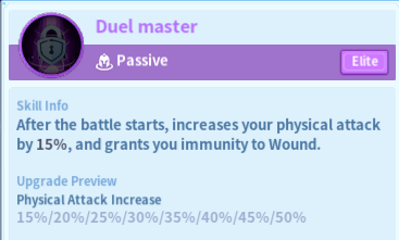 There are two main builds for Yoshi, one he will be a supporting character for Merlin, in the other he will be the 2nd damage dealer of the team. The skill that I will focus on, are the ones in which he is the 2nd damage dealer, but I'll also mention the ones in which he takes the support role for Merlin. The very first ability that will be of great utility for Yoshi is either Anger, or Duel Master. Anger will provide up to 30% physical damage of your immortal troop in battle. Duel Master will provide up to 50% more Physical Attack to your immortal, and immunity to Wound, which will allow him to have a little more survivability against teams that make use of Genghis Khan.