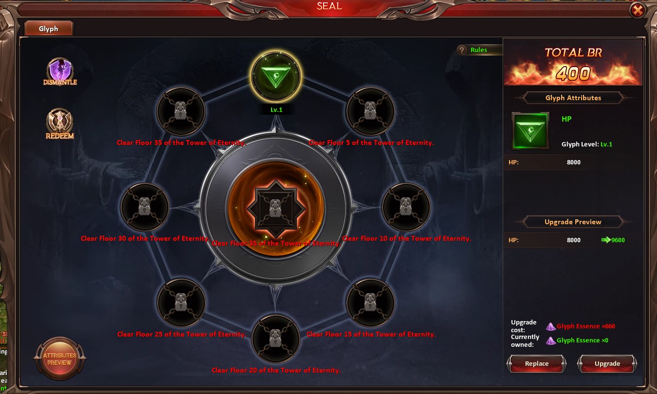 Tower of Eternity, Glyphs and Divine Glyphs