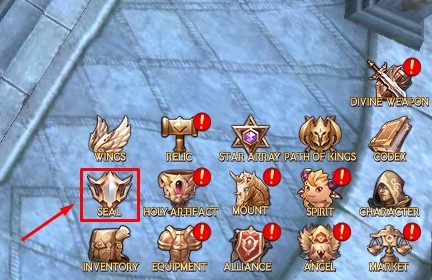 When you first open the Seal Interface, this is what you will see. The first glyph that you receive will unlock at level 124 when you first unlock the system. The next slots unlock as you clear higher floors in the ToE instance.