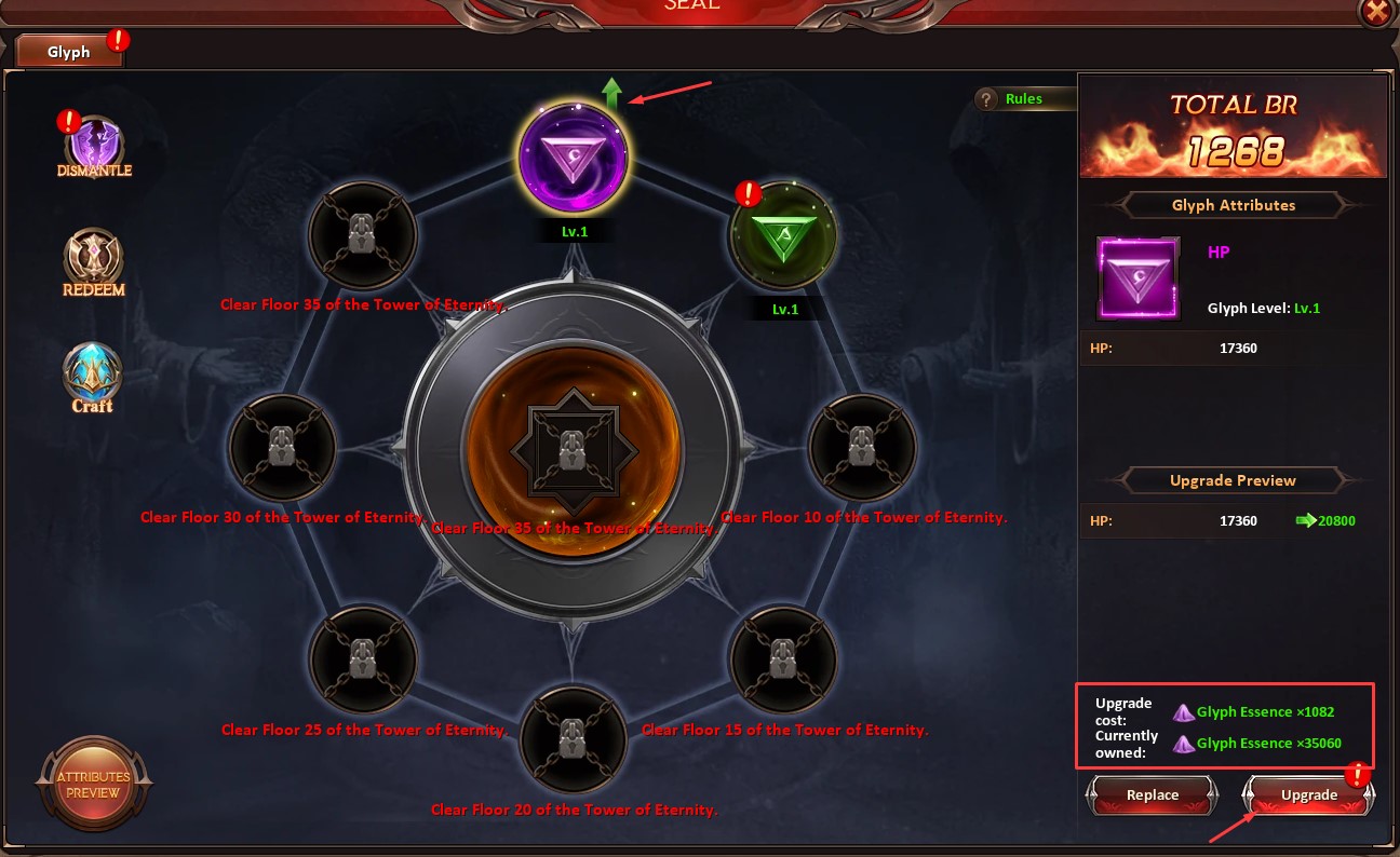 Upgrading Glyphs (both Regular and Divine)