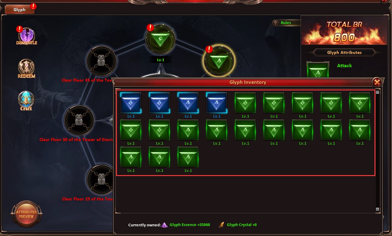 - Dismantling glyphs will return 100% of Glyph Essence and crystals.