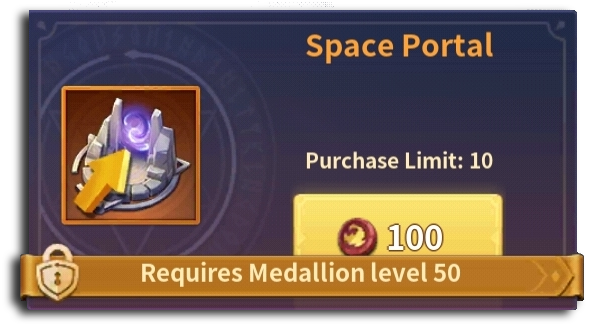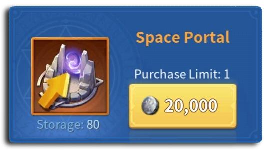 - Alliance Shop - This is the quickest free to play option but still takes a long time if you have high power, you can purchase space portals from your alliance shop by spending 20,000 Silver or officially known as Alliance Contribution. Your alliance requires to be level 9 for you to be able to do this and only 1 portal can be purchased per day.