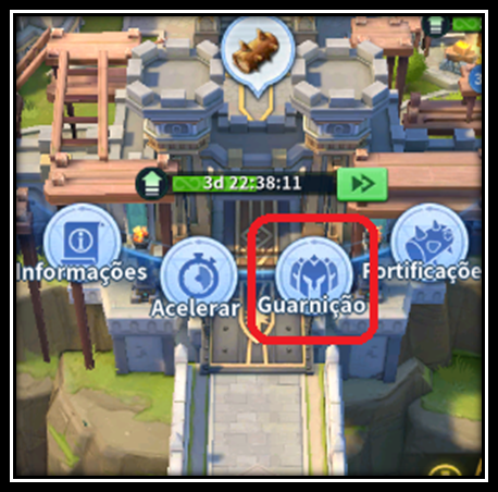 Guarnição: é a ação de usar uma de suas tropas para proteger seu território de invasores em potencial, que de outra forma diminuiriam diretamente sua prosperidade e matariam soldados de seus campos de treinamento sem sofrer nenhum dano. Existem duas maneiras de guarnecer seu castelo, a primeira é pressionar em sua parede e selecionar o ícone 'Guarrison', e a segunda é pressionar em seu território no mapa do mundo.