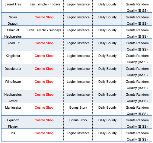 Star Cosmo are blue, and they mainly increase a Saint’s SPD, Inflict Status Chance, and Skill Res.