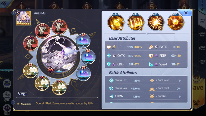 (Tap on a Saint in the lineup menu to view its Cosmo and skills)