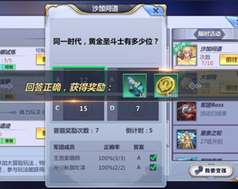 Players will get Saint experience and Gold for each question answered correctly.
