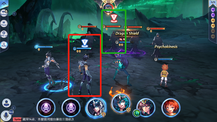 1. Tap a Saint’s avatar to change whether it attacks with basic attacks or with any skill attack.