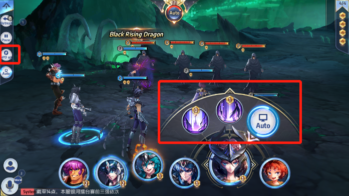 You can let the AI assume control over your characters by tapping the Auto icon in the top-left corner. While in auto-battle, you can perform the two following actions: