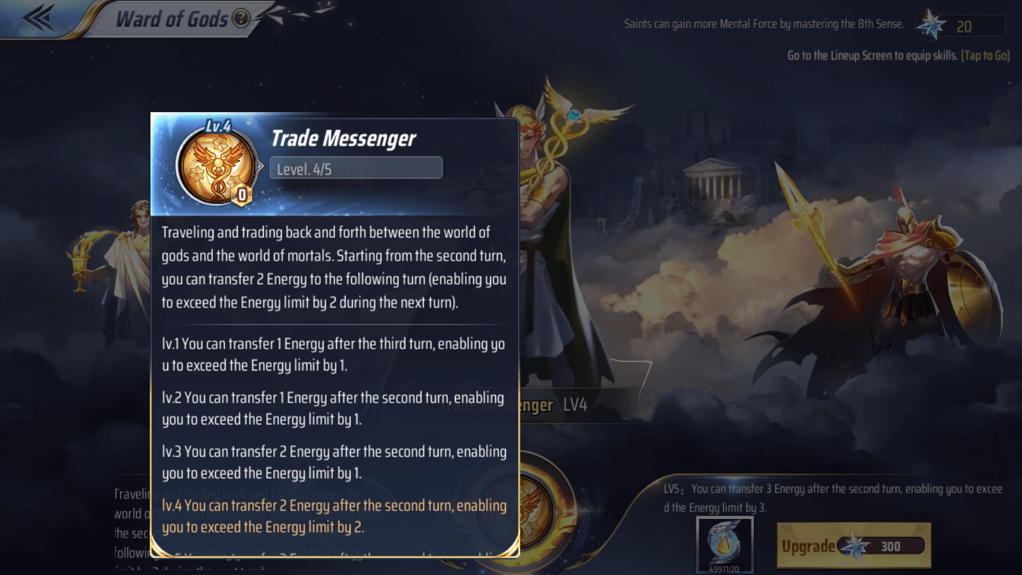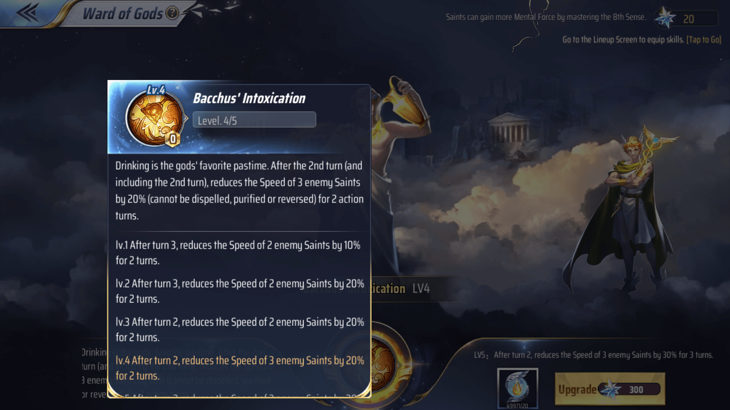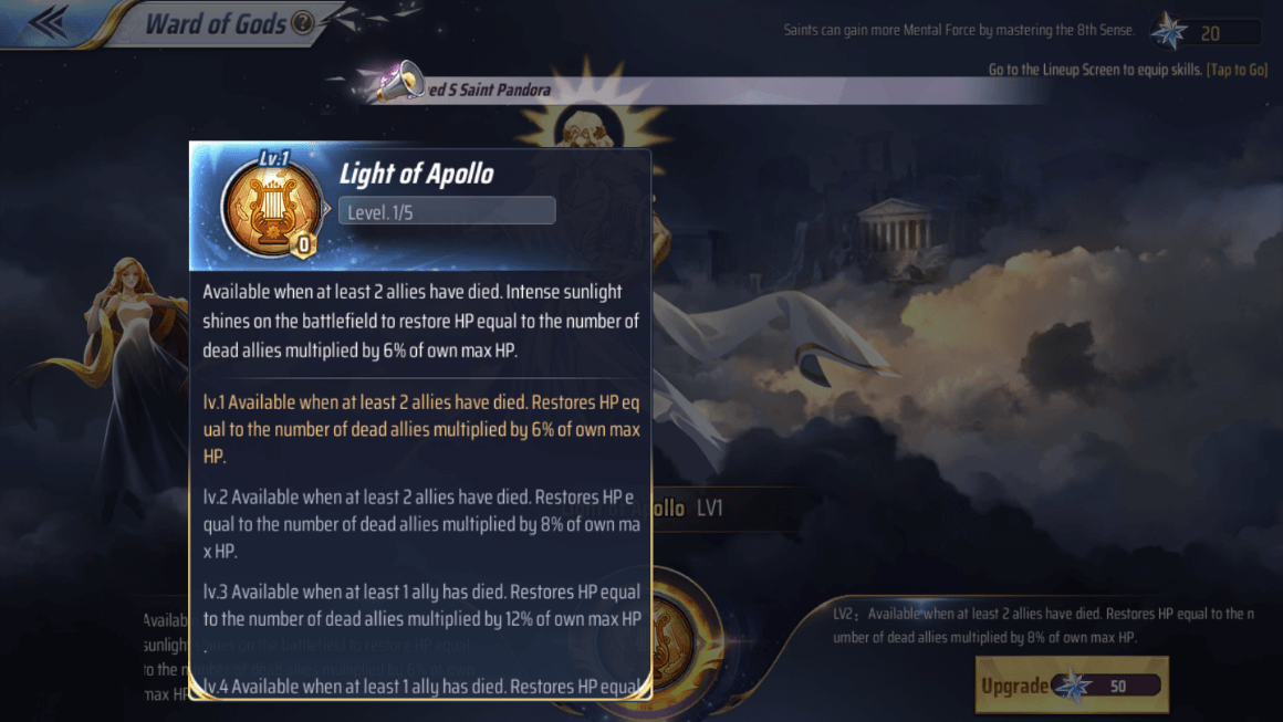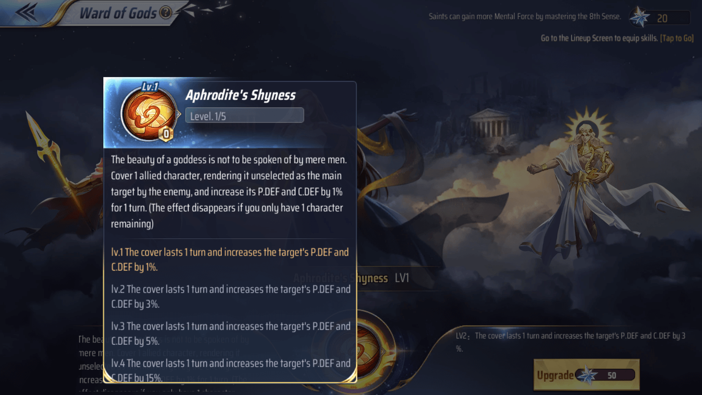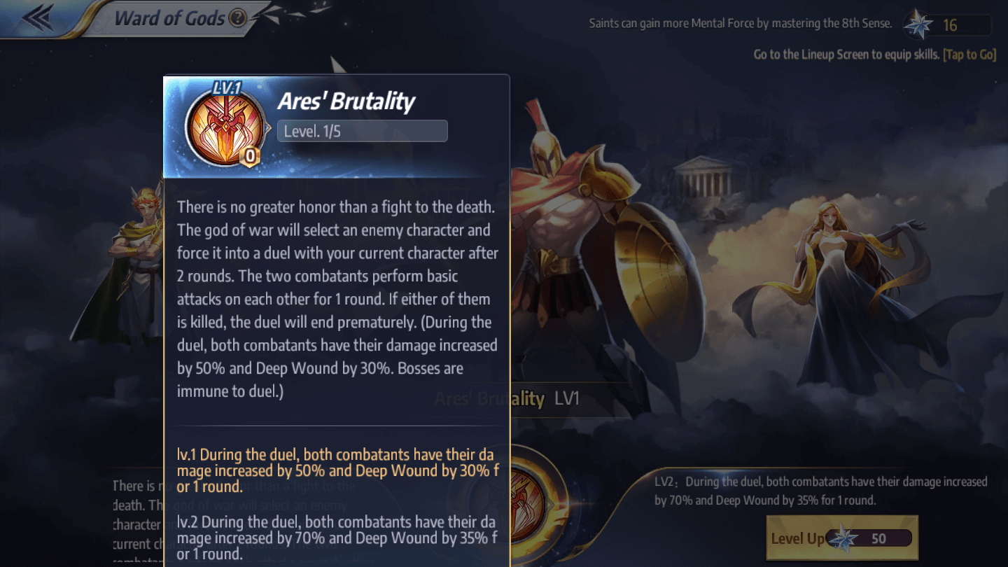 Players can select and load up one Ward of the Gods skill in the Lineup or Preparation Menus and use it in battles.