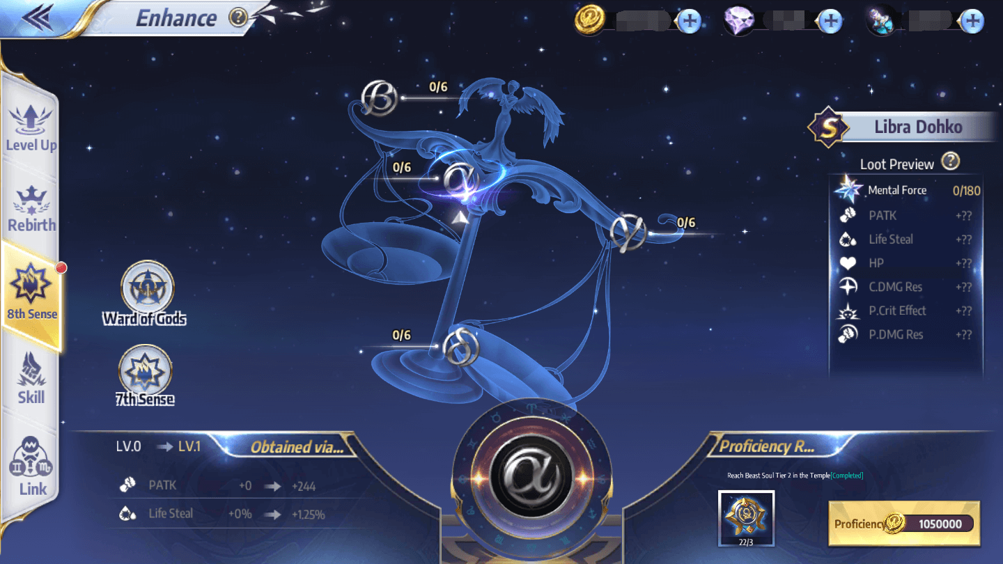 α: ATK + confrontation or control attribute (one of DEF, Status HIT, DEF Pierce, and Life Steal), the Proficiency Requirement is reaching Tier 2 in the corresponding Saint Temple.
