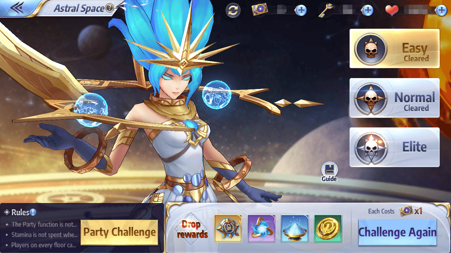 Players can challenge Astral Space after completing Dimension Space 8 level.