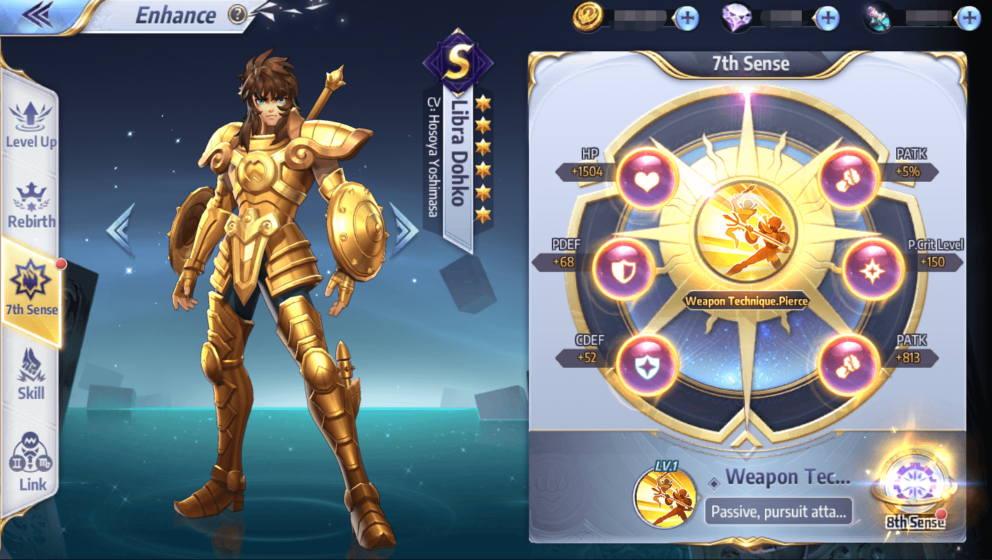 Conditions for opening: When the player's level reaches level 38, the Saint who has awakened the 7th sense and reached level 60 can open the eighth sense.