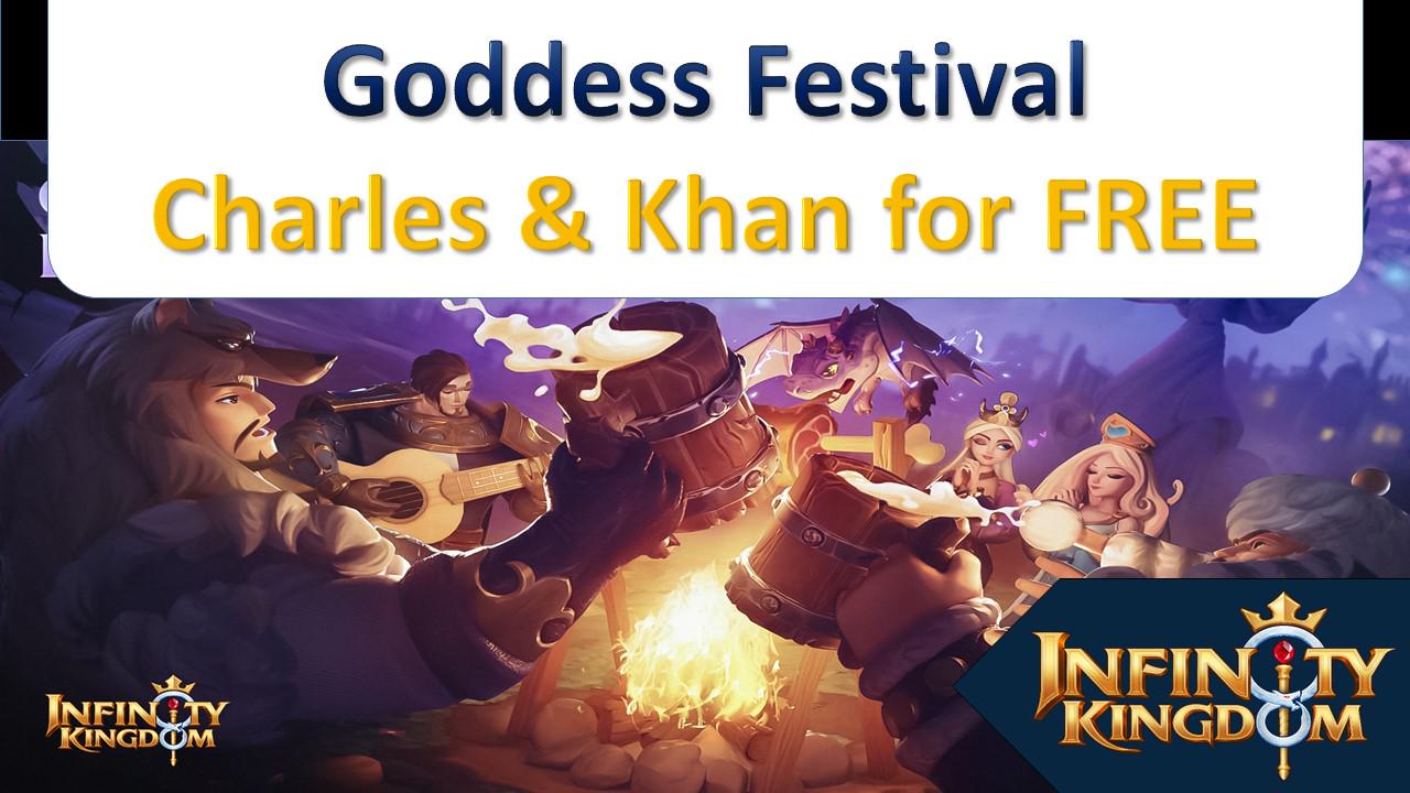 Dear Infinity Kingdom community, today we are going to take a closer look in the Goddesses Festival. I straight up start by saying that this is the best events that I've seen in a long time, in this articles I will explain why I hold this believe, and also teach you how to take maximum advantage of this awesome event, so if you want to obtain Charles, Khan or Baldwin for free,keep reading.
