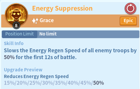Energy Suppression will reduce the energy regen speed of all enemies, so our team has a high chance to get the first hit and it will reduce the opponent's damage as well.
