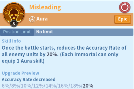 Misleading will reduce the accuracy rate of the enemy up to 20%. Because the Water team is the damage burst team, so we must keep dodging the enemy hit as much as possible.
