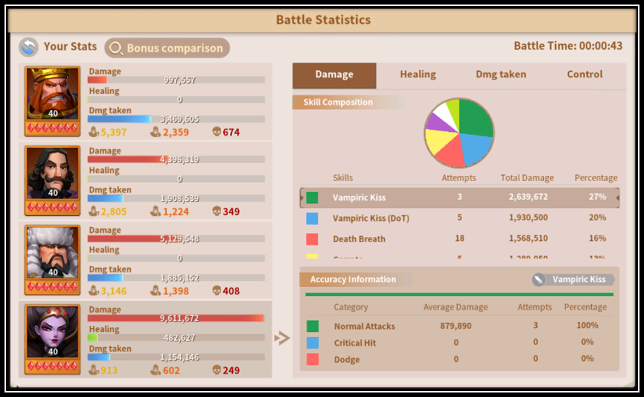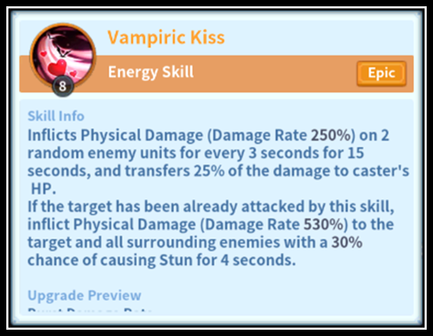 Vampiric Kiss is super strong, it has one of the highest damage modifiers in the game,and on top of that it will stun your opponents, this is just insanely good. Obviously Elizabeth is best utilized with Shadow teams, but she is also one of the most versatile immortals in the game, and she can fit in nearly any team out there. One of my favorites is the Lightning team, because her ability's continuous damage and stuns have great synergy with the third skills of the Lightning Dragon, Ghostly Drumming, which increases your Lightning immortal's damage based on the amount of negative effects that your enemies have.