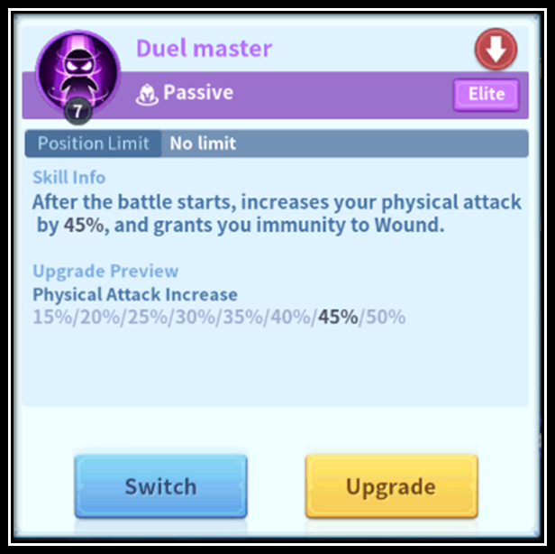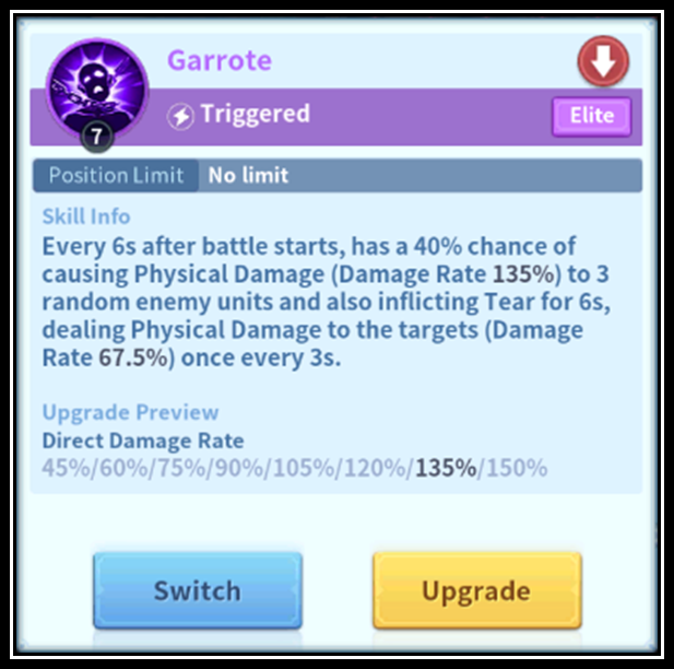Elizabeth can assume nearly any role as a back-liner, but my favorite is as a damage dealer. Since I use her in my second march, I try to take advantage of her Vampiric Kiss' powerful modifiers, and utilize Anger, which further increase her skill's damage, and Duel Master, which also further increase her damage, and provides Wound immunity, which also has good synergy with her ability that has life steal. The third skill that I utilize on her is very subjective, it is Garrote, which cause bleeding on 3 random enemy immortals. I use Garrote because my Elizabeth is in my Lightning team, which has great benefit from negative effects. If you are using Elizabeth in your main team, i highly recommend utilizing Death Breath, which provides incredible damage output.