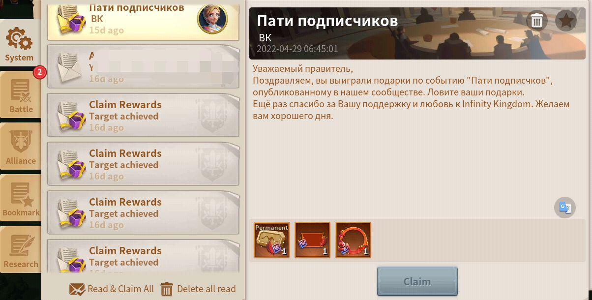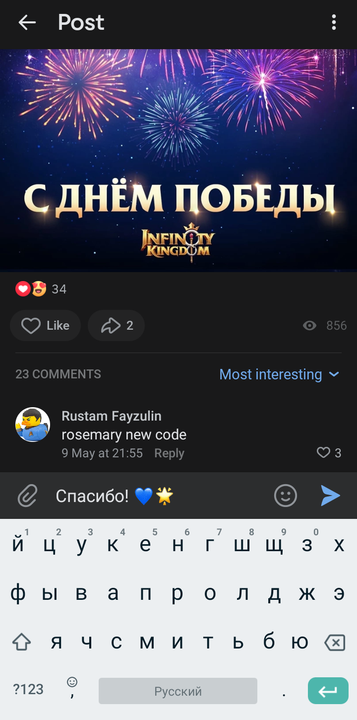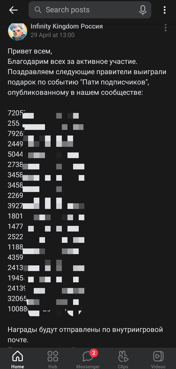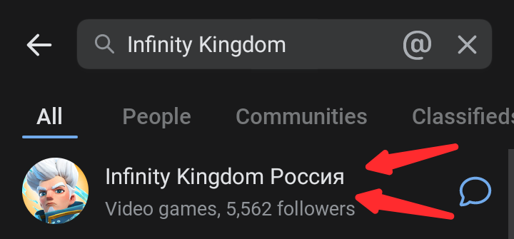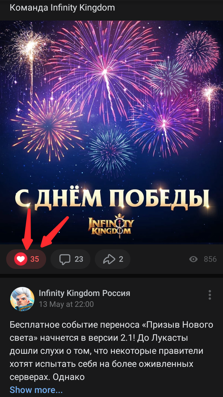 Open VK → Go to the Official Infinity Kingdom Page → Check the table!