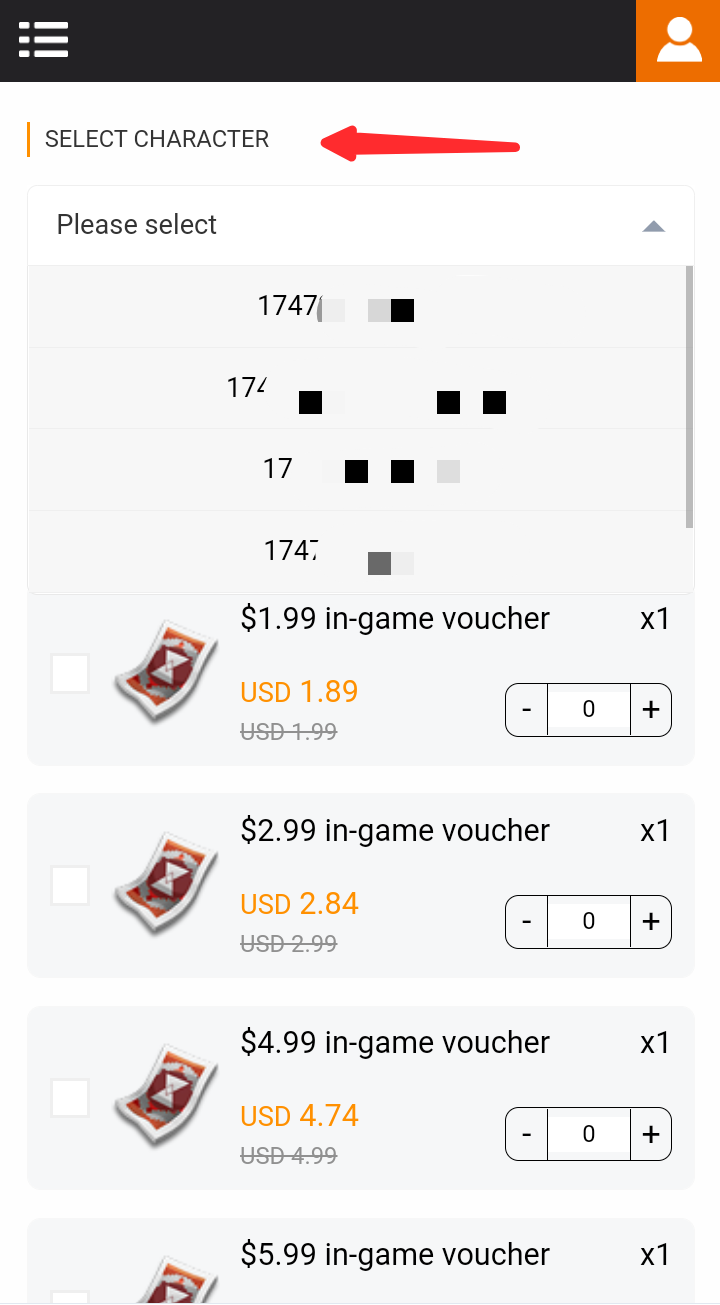 If you have seen your character's name, it means we can proceed to the purchase process.