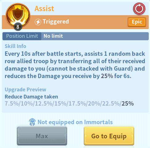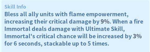 Trajan's skill is like an Immortal Support skill in general, he increases his critical rate up to 10% and critical damage up to 30%. This is very good when combined with Immortal who will get additional damage like Seondok!