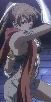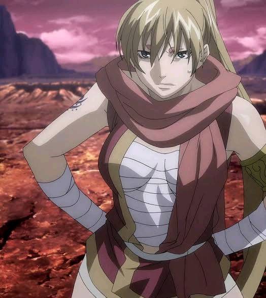 En las manos lleva guantes sin dedos marrones. En la pierna izquierda un trozo de tela morada, lleva puestas unas sandalias. En el brazo izquierdo lleva un brazalete. En su brazo derecho lleva un tatuaje que es el símbolo de su familia, hecho con la sangre de su hermano.