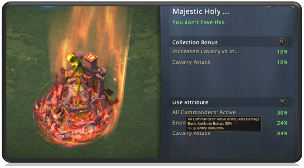 “Flaming Throne” and “Majestic Holy City” increase All commanders’ AAS damage by 30%. Also, there are other castle exteriors which boost just cav, inf or spear commander’s AAS damage: