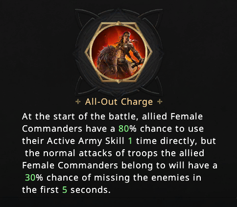 2. Female setup is extremely vulnerable against Petyr Baelish’s Awakening skill “Malicious Speculation” as our commanders can hit our own troops while using Active Army Skills.