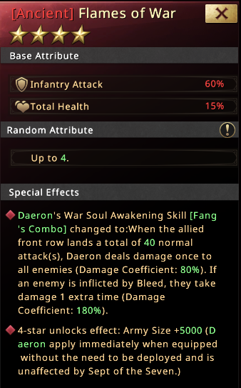 'Flames of War' help improve Daeron's skill which results in more damage being dealt to all the enemies, which provides a major boost to your lineup.