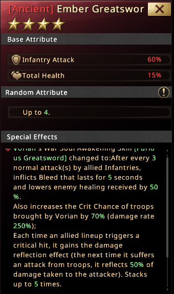 Ideally, there are no weapons in-game who are specific for the improvement of any synergy. How it basically works is, each commander’s weapon improves their awakening skill or overall performance and then as an end product, it enhances the performance. Just the way we have some crucial commanders for Bleed synergy, their own weapons act as the biggest trigger point. Let’s have a look at some of the top bleed/crit synergy weapons.