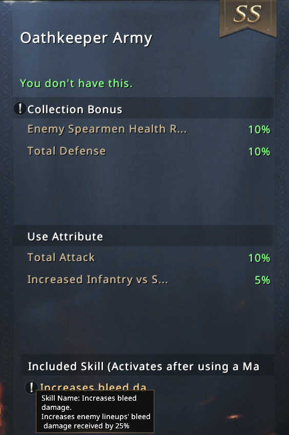 A new marching animation called "Oathkeeper Army" has also been added in-game which also improves commanders' Bleed Damage which directly strengthens the synergy.