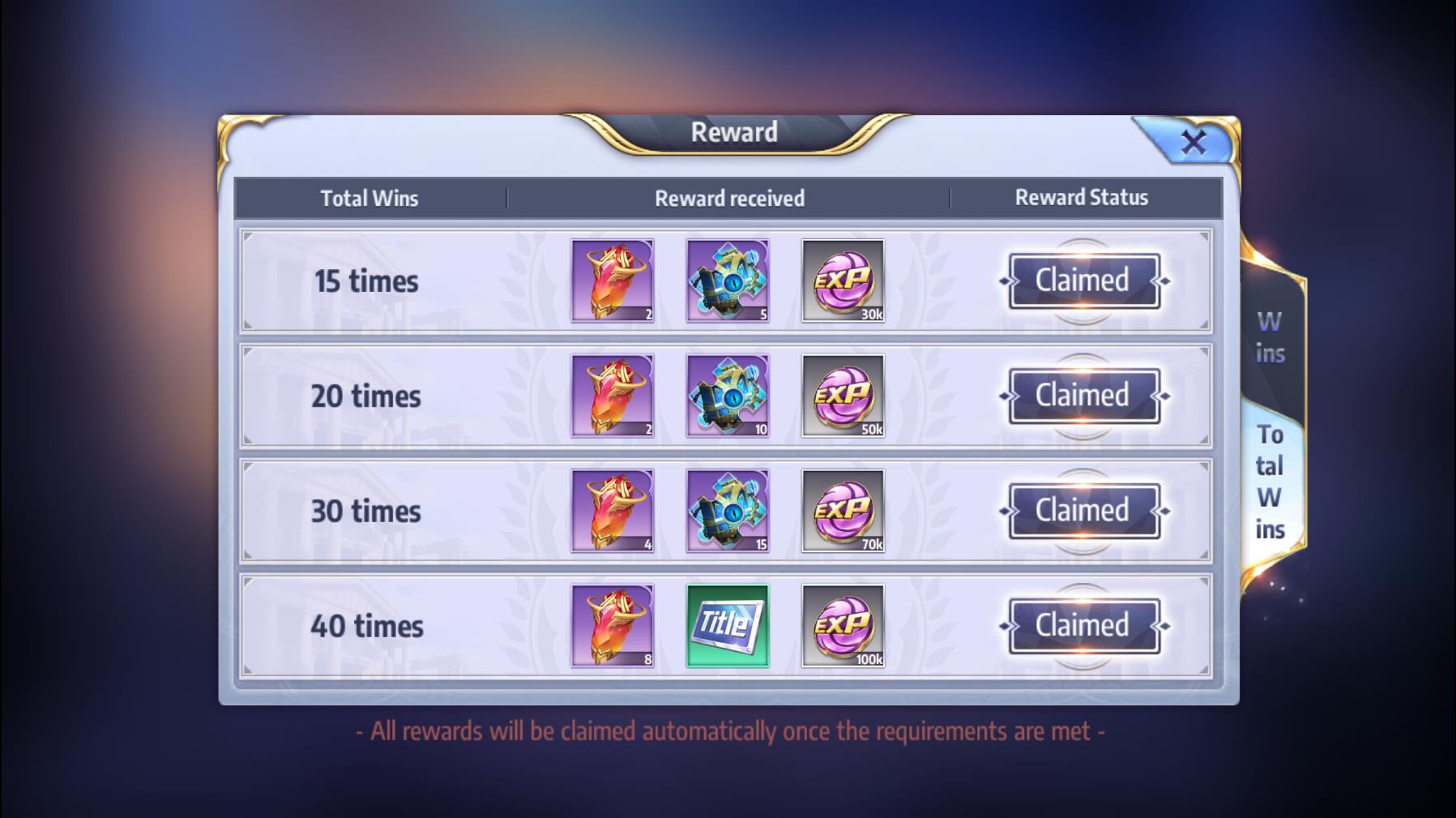 In addition, you can earn 30 skill tome shards for achieving a total of 30wins per melee season