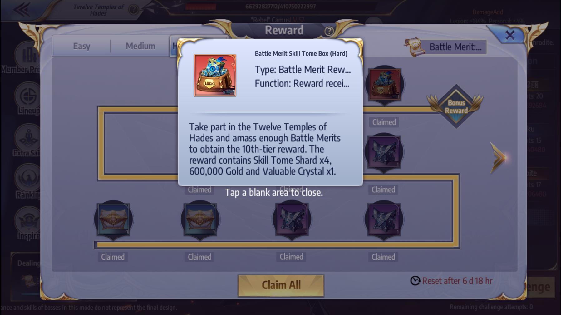 Use to increase the skill level of SS rank Characters (Hades, Poseidon, and Athena, Hypnos) only. can be obtained by combining 2 regular skill tome