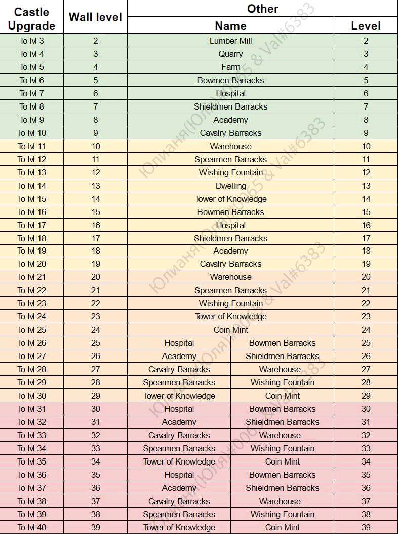 Requirements for each level of the castle. You have to upgrade it every time you upgrade the castle. To raise the force quickly.Follow me to receive all new news and information