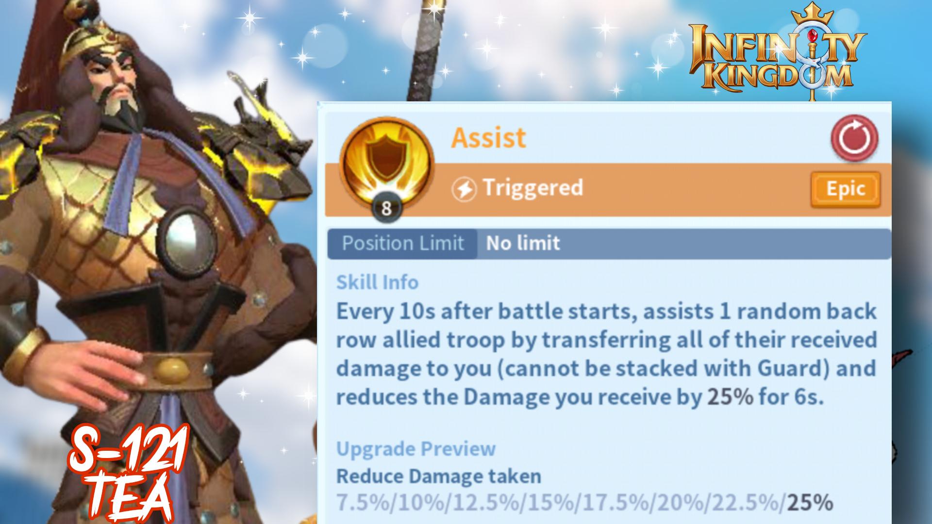 Assists can protect back-row and reduce the damage up to 25%. It will help Immortals such as Cleopatra, Arash, Genghis Khan or Elizabeth. So they can deal more damage.